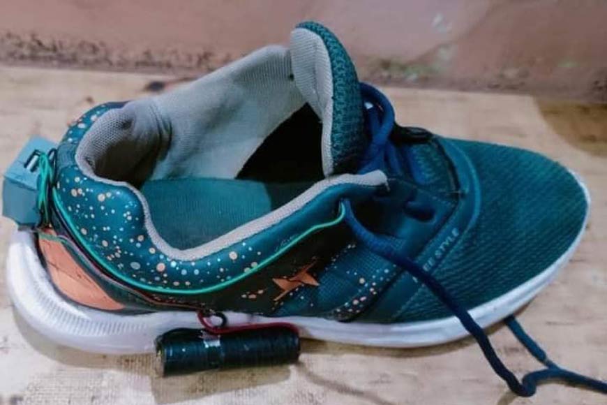Souvik’s latest innovation claims that electricity can be generated by walking with shoes on.