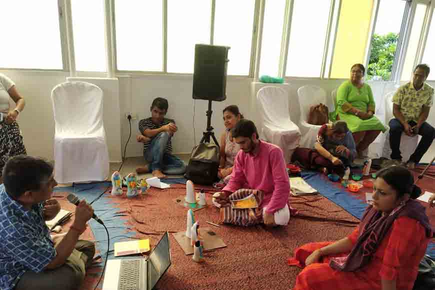 Some journeys are unique. Just like the journey of Chalchitra Academy. To understand exactly how and why the lesser-known patuās of Bishnupur and Medinipur flourished even before Paul Gauguin could etch his magic with his first impressions on the plains of Tahiti, one needs to know how Chalchitra Academy unfurled its existence. Art needs to be honest travelling along a rustic tapestry, that speak of the toils of ordinary man. From 1995 to 2015 this journey stood upon an intimate understanding of the utter simplicity of hues, textures and forms. Away from the cogs of urban alienation, the voyage of artist Mrinal Mandal and designer Jayati Bannerjee took them from Government College of Art & Craft into the world of pata, dokra and a tapestry of dolls and masks. A voyage into the roots of the lokaja, before they could even dream of organising workshops to impregnate our urban nightmare with dreams of the poignant macrocosm.