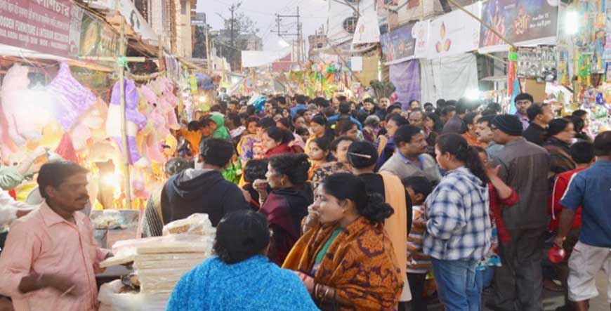 Unlike other fairs, Chandi Mela doesn’t have a designated open space. It is mainly held in a residential area, spilling over to narrow roads and lanes, which make for a unique setting. The place remains abuzz with people pouring in from different parts of the city. The last day of the fair, often called “bhanga mela” or “fragmented fair”, is the best time to indulge in a buying spree when the vendors sell their wares at a throwaway price. Roadside fast food stalls galore as do sweetmeat shops selling traditional Bengali sweets like puli- pitha, khaja, gaja, pati-shapta, rosh-bora, naroo, notun gurer sondesh etc. These will give you a feel of a rural fair in the middle of a bustling metropolis.