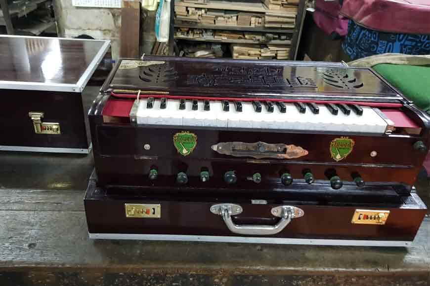 Times have changed and so have tastes. There was a time when ‘The Melody’ was a bustling shop with singers, musicians and connoisseurs of music frequenting the hotspot with urgent orders for repair work of musical instruments or place orders for personalized instruments. From Hemanta Mukhopadhyay, Shyamal Mitra to Manna De many dropped at Melody to buy or repair their personal musical instruments. 14-15 repairmen worked tirelessly to perfect the tuning or other nitty-gritty of instruments. Other than the harmonium, the shop also repaired tanpura and guitar. But now the workload has dwindled due to lack of expert repairmen. As a result, only about five repairmen work in the shop, tinkering with harmoniums. The shop is crammed, but stalwarts like Manna De never thought twice before entering its interiors even on days there was a power cut. For he knew this is the right place to get his job done.